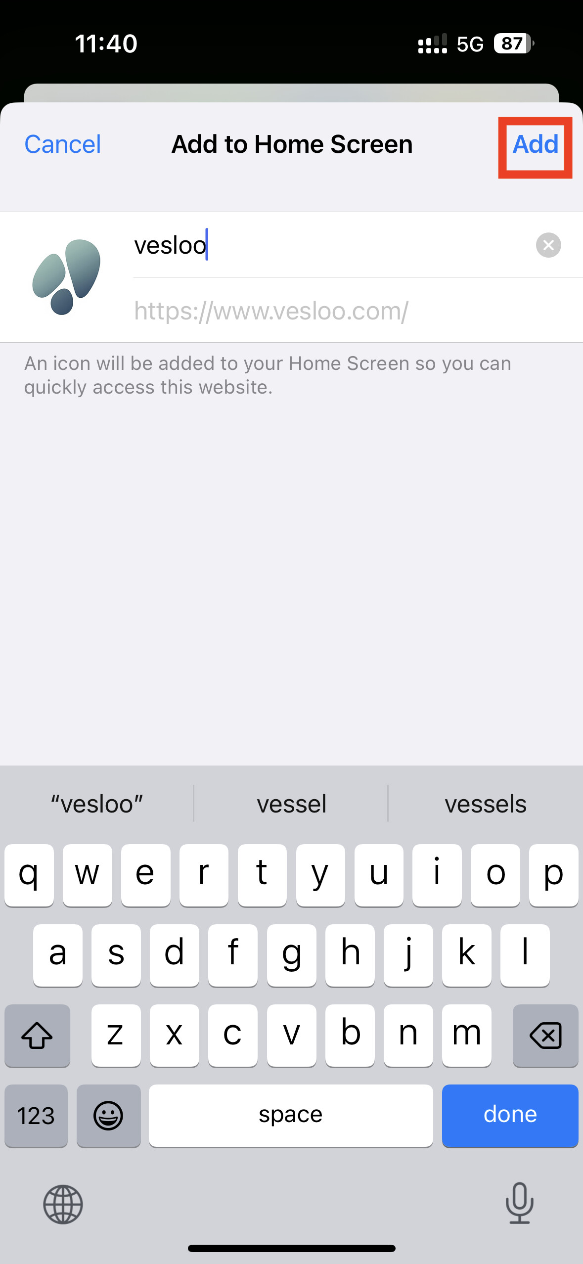 That’s it! The Vesloo icon will now appear on your home screen, ready for one-tap access.