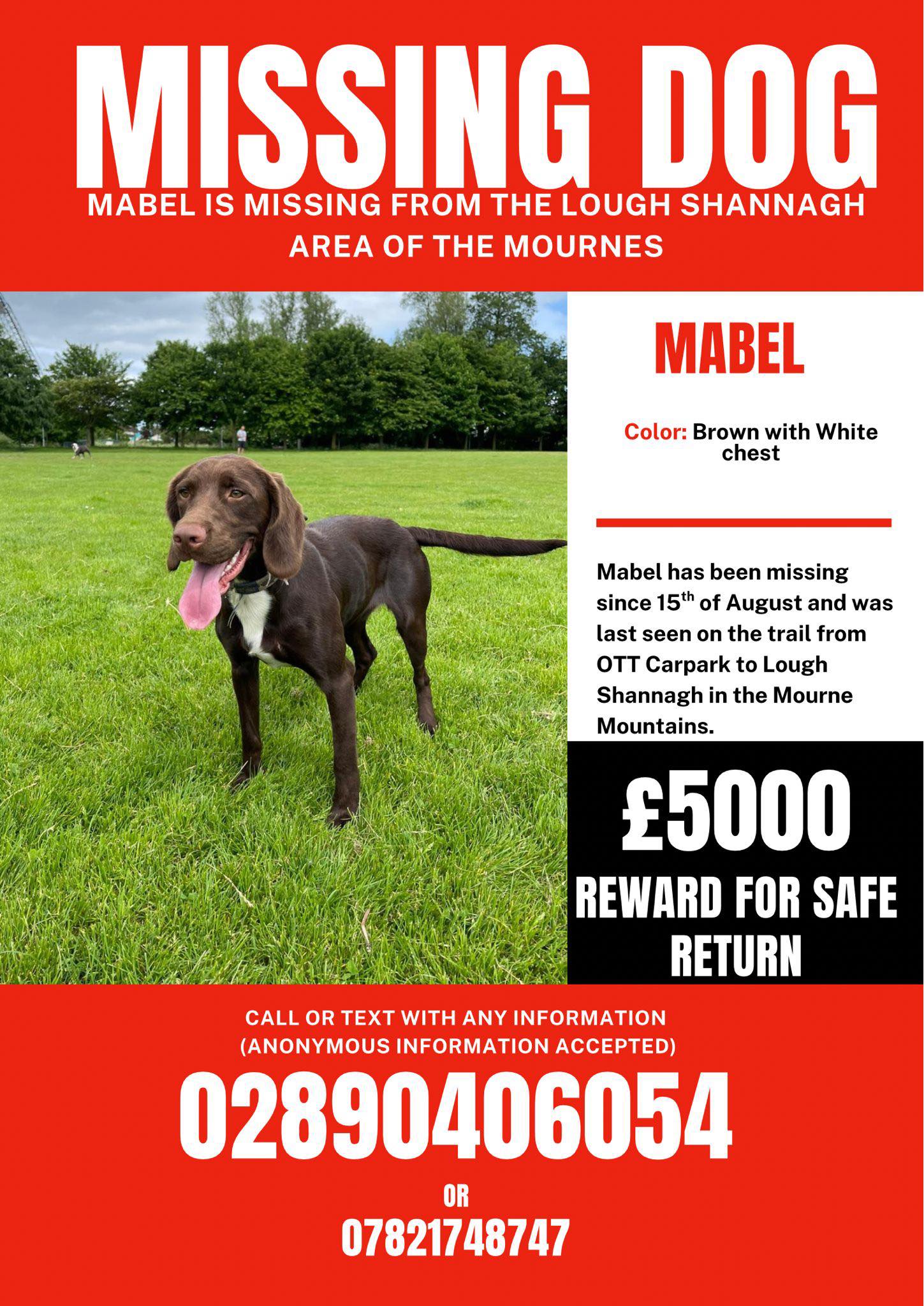 Additional Notes: Substantial cash reward for Mabel’s safe return.